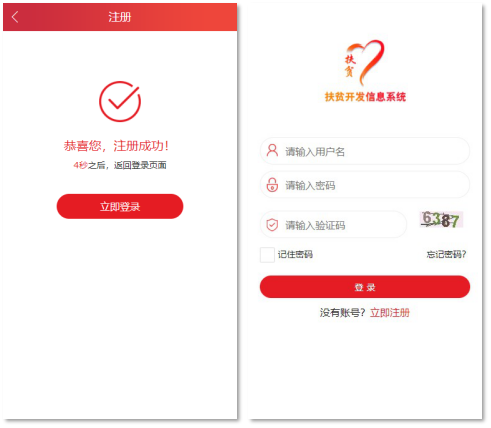1、注册与登录 启动APP → 点击“立即注册” → 选择“我是贫困户” → 输入本人姓名+身份证号(系统自动对接全国防返贫监测信息系统校验)→ 填写手机号+短信验证码+设置密码 → 注册成功,即刻登录。