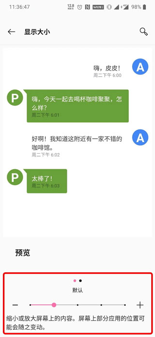 ? EMUI系统:设置 → 显示和亮度 → 字体大小 → 选择「默认」