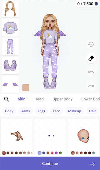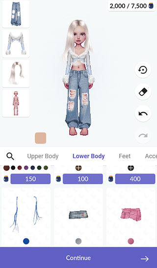 下载并安装《永远的天空虚拟装扮》后,打开游戏稍等2~3分钟,选择“Use Email”方式登录,即可开启你的造型之旅。进入形象编辑界面后,你可以自由调整初始角色的外观——从身体轮廓、发型、上衣、鞋子到各类贴纸,所有元素均可随心更换。部分服饰还支持多色切换,右侧的“上一步/下一步”按钮和橡皮擦功能让你随时撤销或重做装扮操作,体验无压力的创作乐趣。