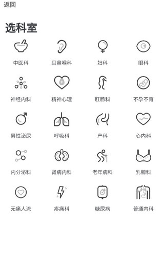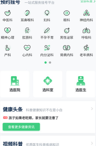2、在首页点击“预约挂号”,依次选择目标医院、科室及医生。